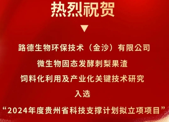 近日,貴州省科學(xué)技術(shù)廳公布了省科技計(jì)劃擬立項(xiàng)項(xiàng)目,路德環(huán)境旗下子公司——路德生物環(huán)保技術(shù)(金沙)有限公司承擔(dān)的“微生物固態(tài)發(fā)酵刺梨果渣飼料化利用及產(chǎn)業(yè)化關(guān)鍵技術(shù)研究”項(xiàng)目,入選“2024年度貴州省科技支撐計(jì)劃擬立項(xiàng)項(xiàng)目”。 此項(xiàng)殊榮,是路德環(huán)境以技術(shù)創(chuàng)新,引領(lǐng)有機(jī)糟渣資源化業(yè)務(wù)從白酒糟向其它食品飲料糟渣多元拓進(jìn)、開辟公司可持續(xù)發(fā)展新賽道的重要一步。未來,隨著該科研項(xiàng)目不斷取得新突破,勢必將與貴州刺梨產(chǎn)業(yè)“延伸產(chǎn)業(yè)鏈、完善供應(yīng)鏈、提升價(jià)值鏈”形成高度匹配,為貴州省打造百億級特色優(yōu)