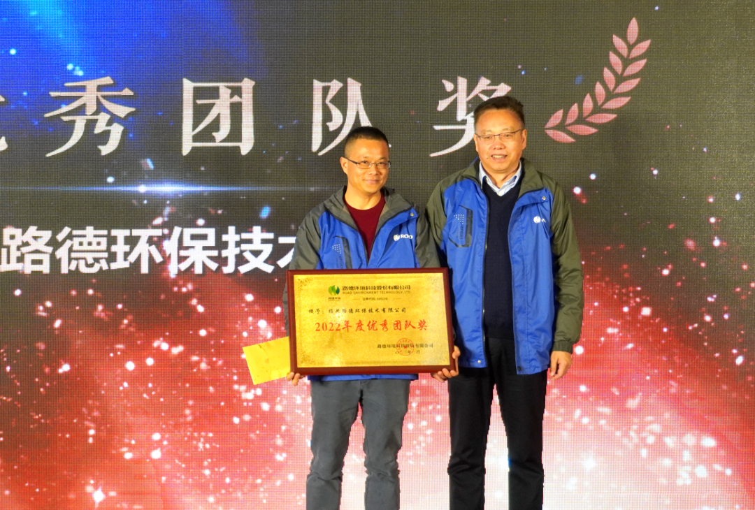 2022年,馮勝球躋身路德環(huán)境“十年員工”榮譽殿堂 他是公司2022年年會中,風采最盛的那一個: 三次站上領獎臺,攬回年度安全生產(chǎn)獎、年度優(yōu)秀團隊和十年員工三項殊榮,舞臺上下,風光無二; 他帶領的紹興路德,也是去年公司各個項目單位里成績最突出的那一個: 他們?nèi)瓿摵蛇\轉(zhuǎn),不僅大幅超額完成年初生產(chǎn)目標,同時也牢牢守住“安全生產(chǎn)”這道紅線。 紹興路德副總經(jīng)理馮勝球 他是紹興路德環(huán)保技術(shù)有限公司(以下簡稱“紹興路德”)副總經(jīng)理馮勝球: 一個“全年開工360多