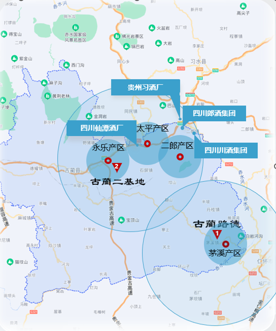 (古藺兩大生物發(fā)酵飼料工廠原材料采購輻射圖)