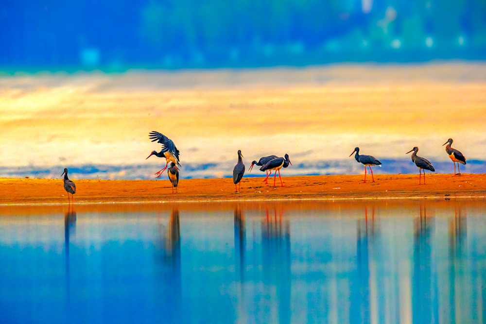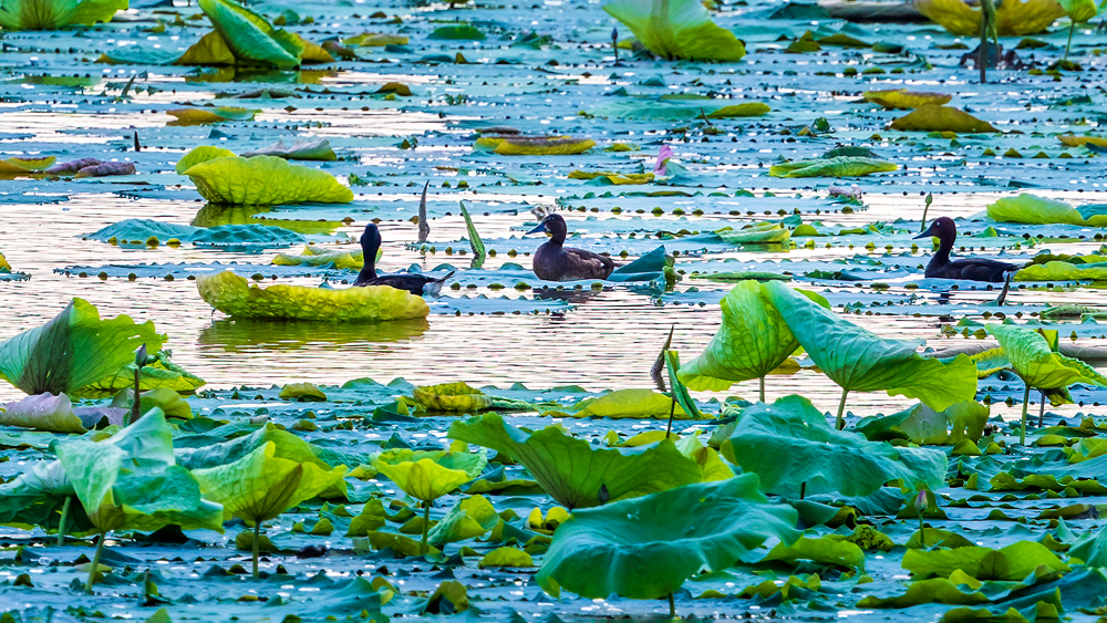 這里,是全球極度瀕危動物青頭潛鴨的“中國最南繁殖地”,它也因此被戲稱“武漢鴨”;也是大名鼎鼎的“五彩斑斕的黑”——國家一級重點保護野生動物黑鸛,連續(xù)9年擇居的越冬之地;