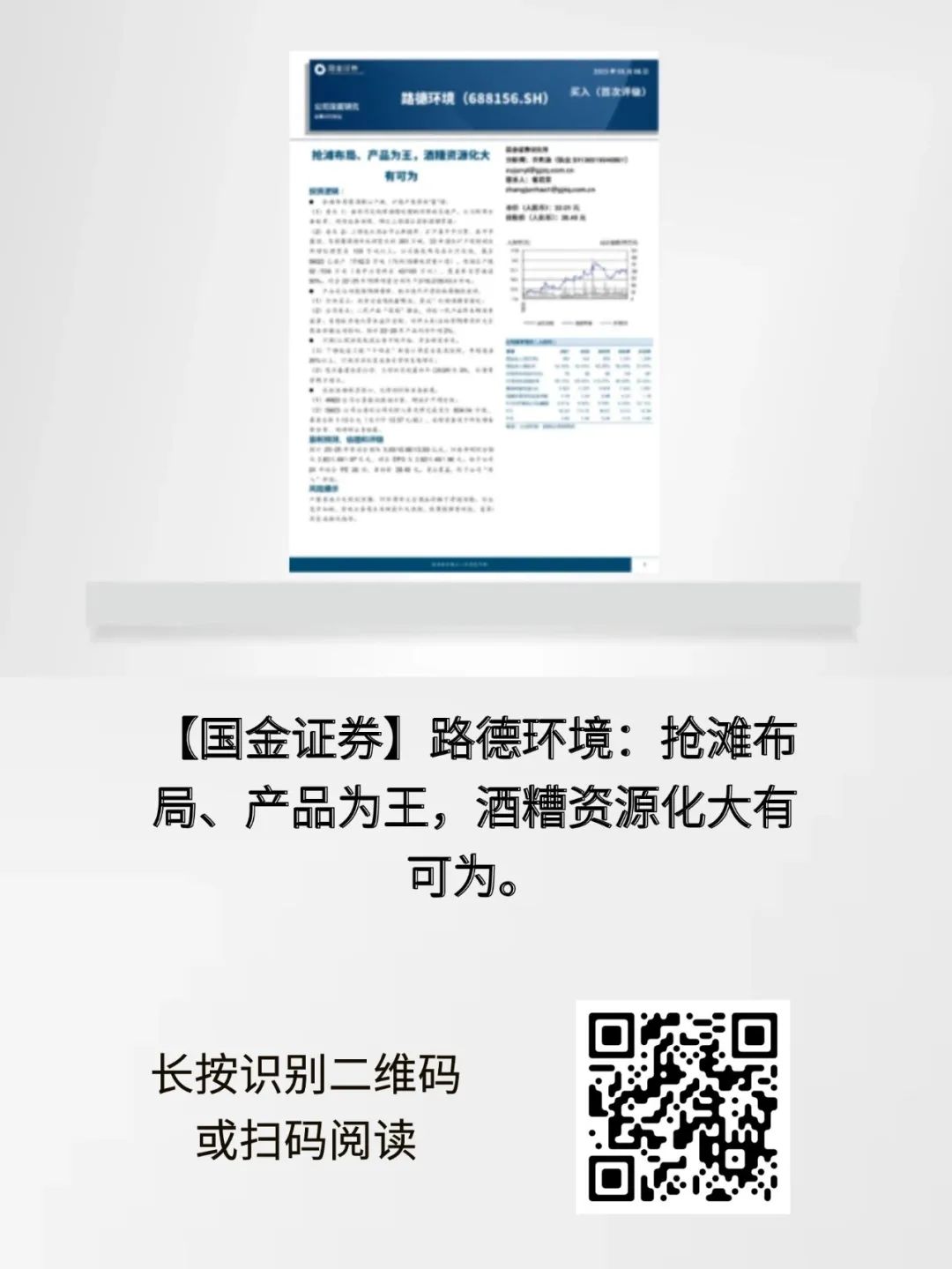 2023年6月6日,國(guó)金證券發(fā)布了以《路德環(huán)境:搶灘布局、產(chǎn)品為王,酒糟資源化大有可為》為主題的深度證券研究報(bào)告,首次覆蓋路德環(huán)境,并給予了“買入”評(píng)級(jí)。