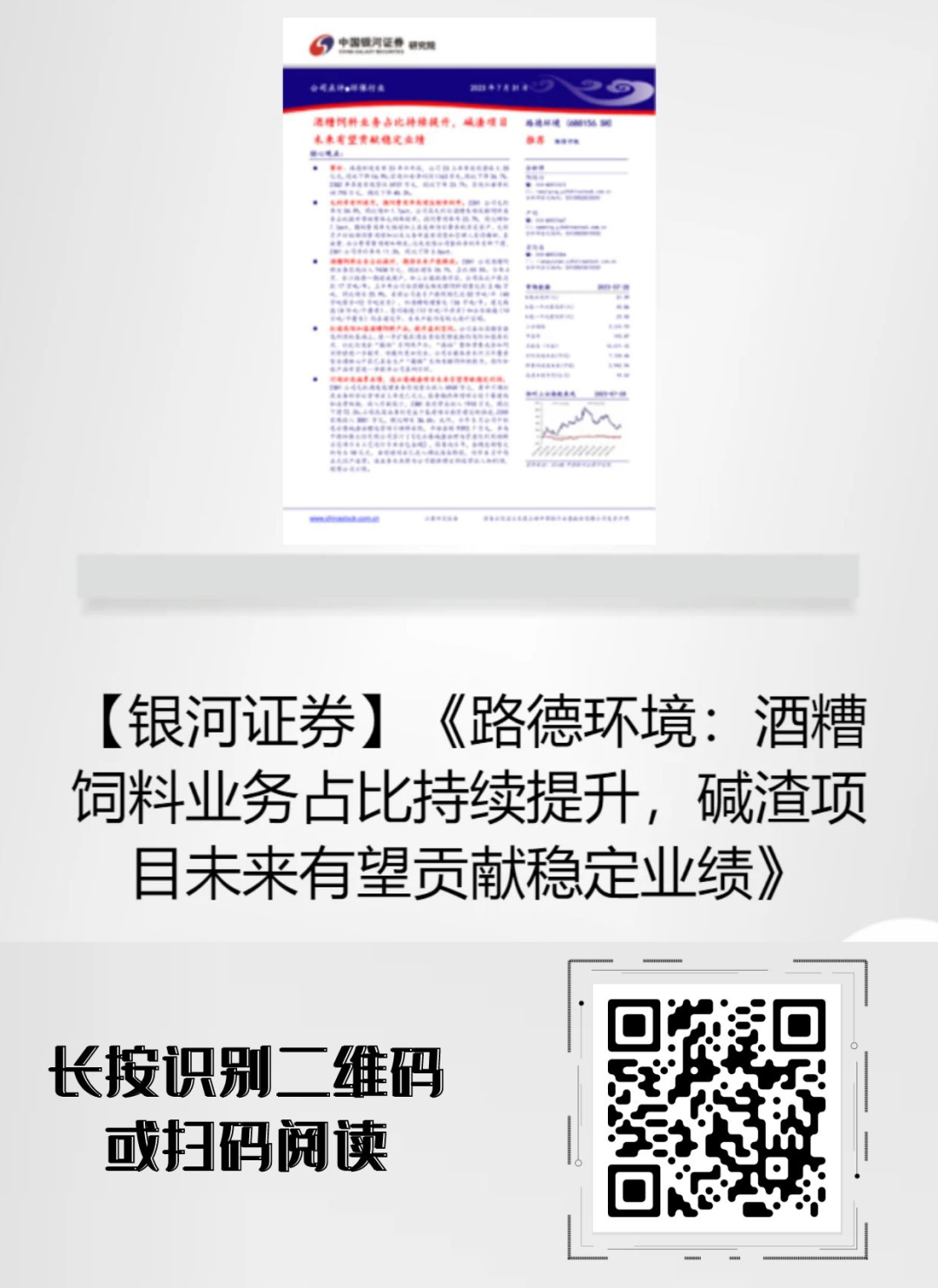 【點(diǎn)評報告】銀河證券點(diǎn)評路德環(huán)境:酒糟飼料業(yè)務(wù)占比持續(xù)提升,堿渣項目未來有望貢獻(xiàn)穩(wěn)定業(yè)績