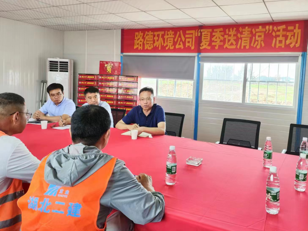 為切實(shí)保障高溫天氣下項(xiàng)目建設(shè)安全進(jìn)行,保證項(xiàng)目建設(shè)進(jìn)度。7月20日,路德環(huán)境董事長(zhǎng)、總經(jīng)理季光明帶隊(duì)來(lái)到亳州路德項(xiàng)目建設(shè)現(xiàn)場(chǎng),考察項(xiàng)目建設(shè)進(jìn)度,也為奮戰(zhàn)在項(xiàng)目一線的建設(shè)者們送來(lái)夏日防暑慰問(wèn)品。