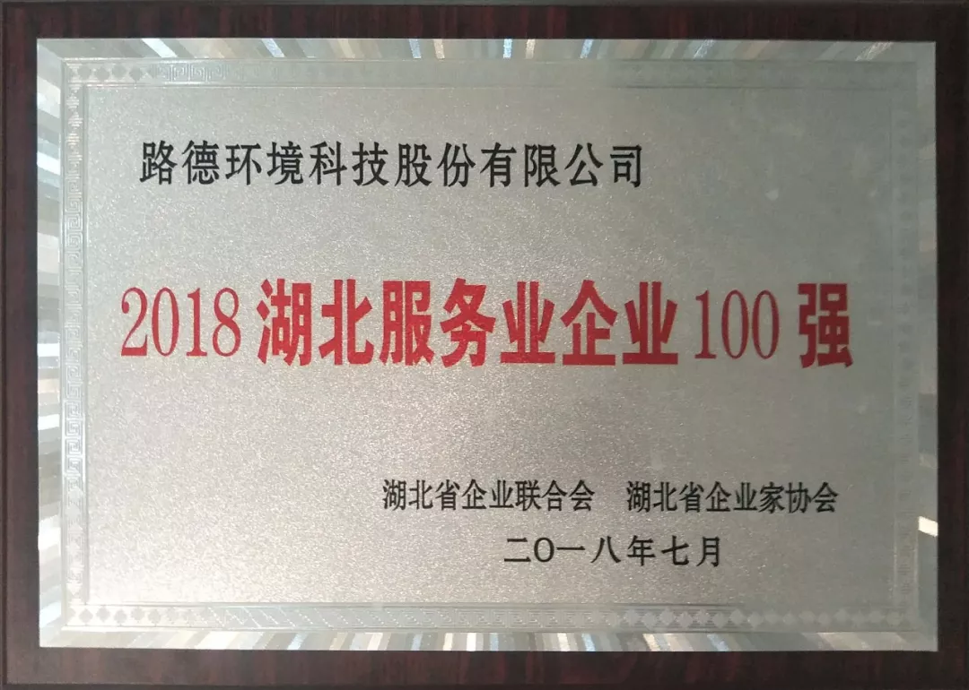 熱烈祝賀“路德環(huán)境科技股份有限公司”榮膺 2018 湖北服務(wù)業(yè)企業(yè)100強(qiáng)